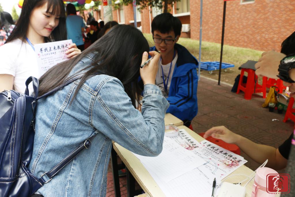 3月28日13点到18点,由华商学院文学系团总支社会实践部承办的以“三尺讲台育桃李,一支粉笔书春秋”为主题的“灯塔杯——寻找未来教师之星”摆摊报名活动在三饭校道火热进行中。