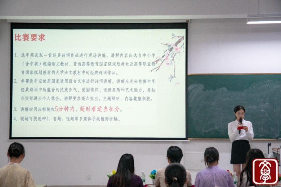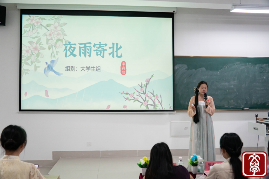 赛程紧凑有序,主持人随后宣读比赛要求,充分调动了现场的期待氛围。在比赛过程中,选手们围绕中小学及大学语文教材中的经典诗词展开精彩讲解。他们深度挖掘诗词的精神内涵与艺术魅力,结合个人体会展现独特视角,展开了一场场跨越时空的诗词对话
