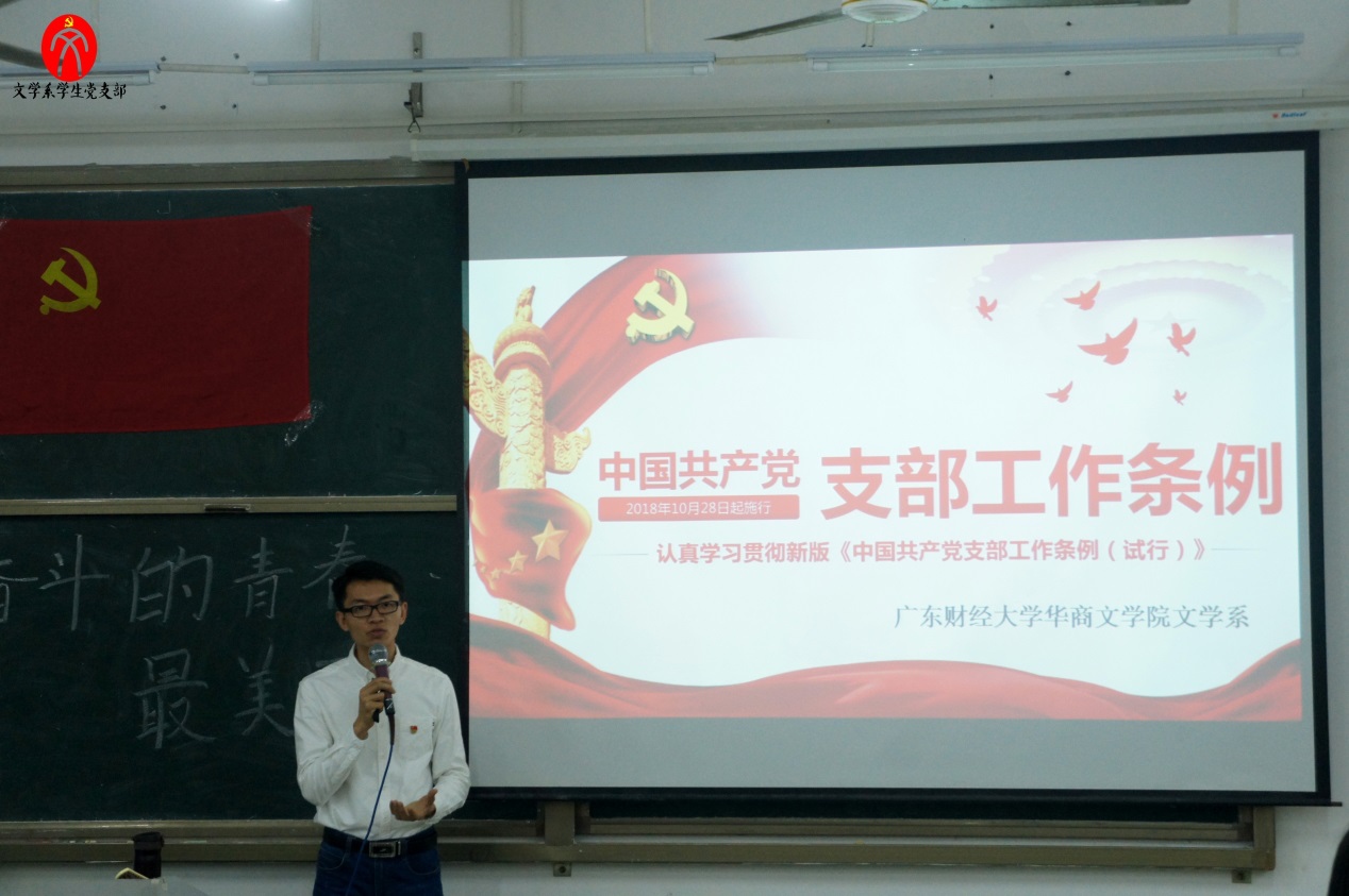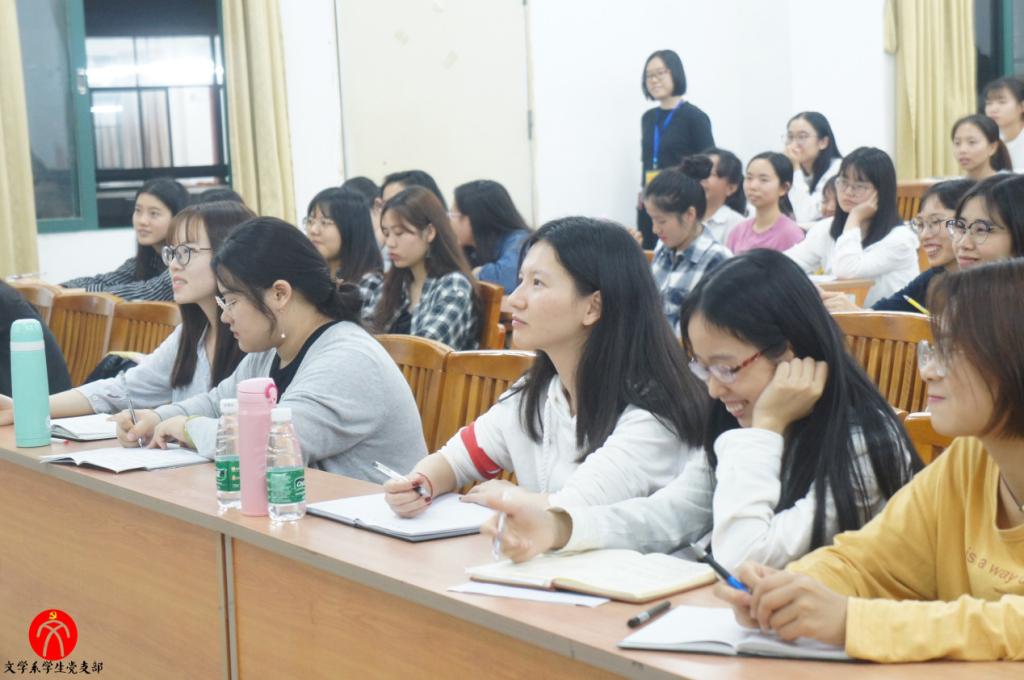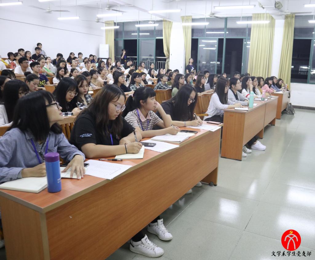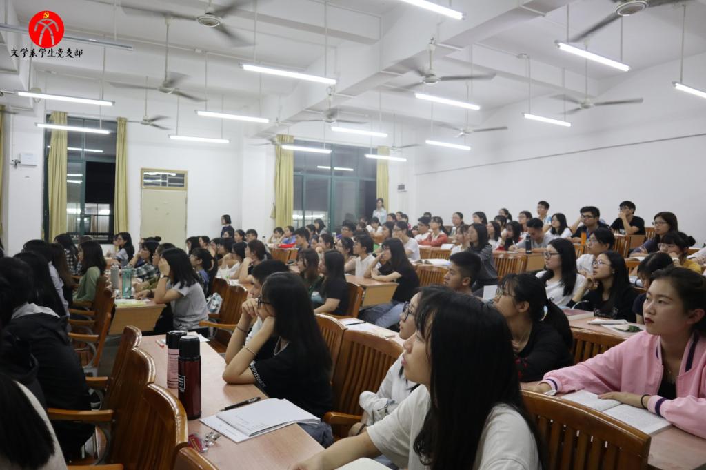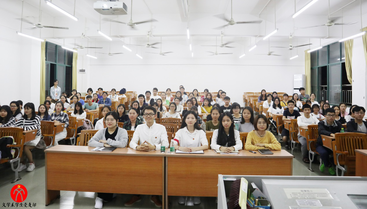 2018年12月6日晚上6:30,文学系学生党支部于励志楼C503开展党课教育活动,由文学系党总支副书记何顺发老师担任本次讲座的主持人。本次讲座主题为“高举新时代改革开放旗帜------学习领会习近平总书记视察广东重要讲话精神”。文学系学生党支部指导老师谢树萍老师、文学系党支部副书记黄群珍同志、组织委员谭敏同志、宣传委员许芊芊同志、纪检委员巫丹同志、统战委员熊滢同志出席本次活动。