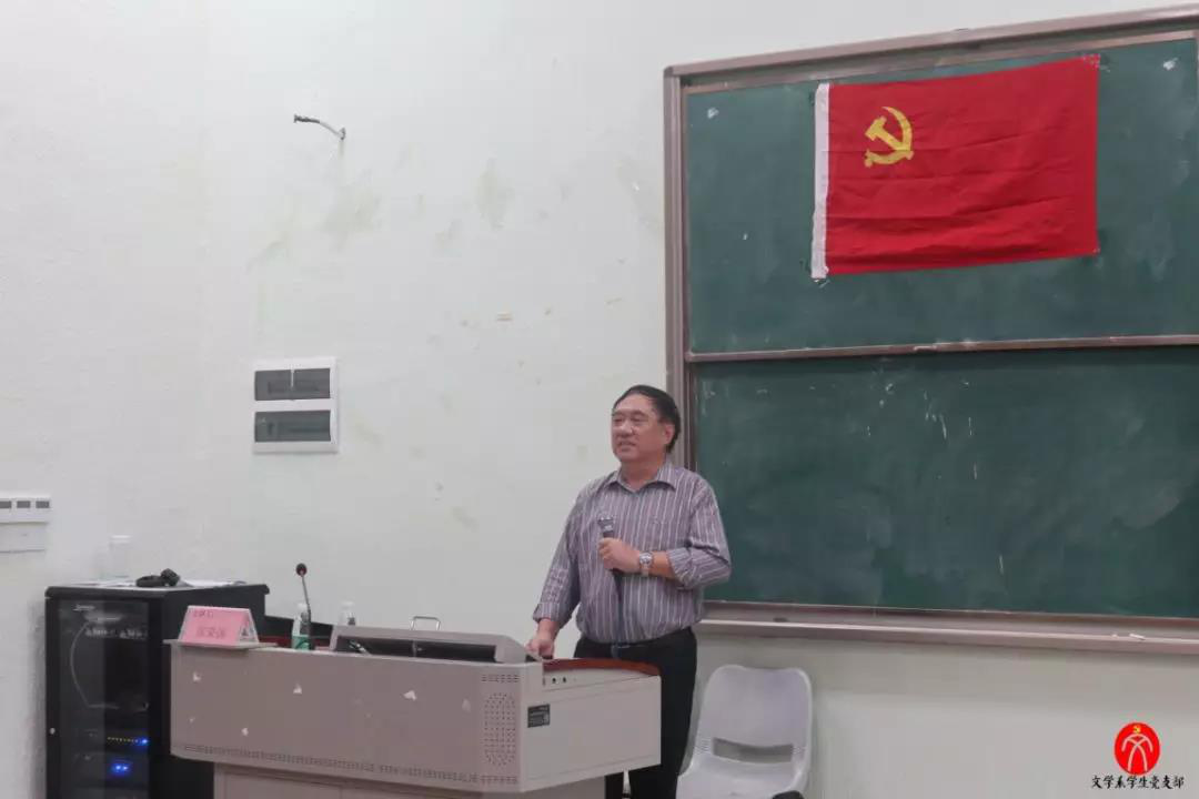 2018年12月3日晚上7:00,bv伟德国际1946于励志楼C308开展党课教育活动,我们有幸请来了思政部主任张荣国教授担任本次讲座的主讲人。文学系党总支副书记何顺发老师、文学系学生党支部指导老师谢树萍老师、文学系学生党支部副书记黄群珍同志、宣传委员许芊芊同志、纪检委员巫丹同志出席本次讲座。讲座主题为“学习习近平总书记视察广东重要讲话精神”。