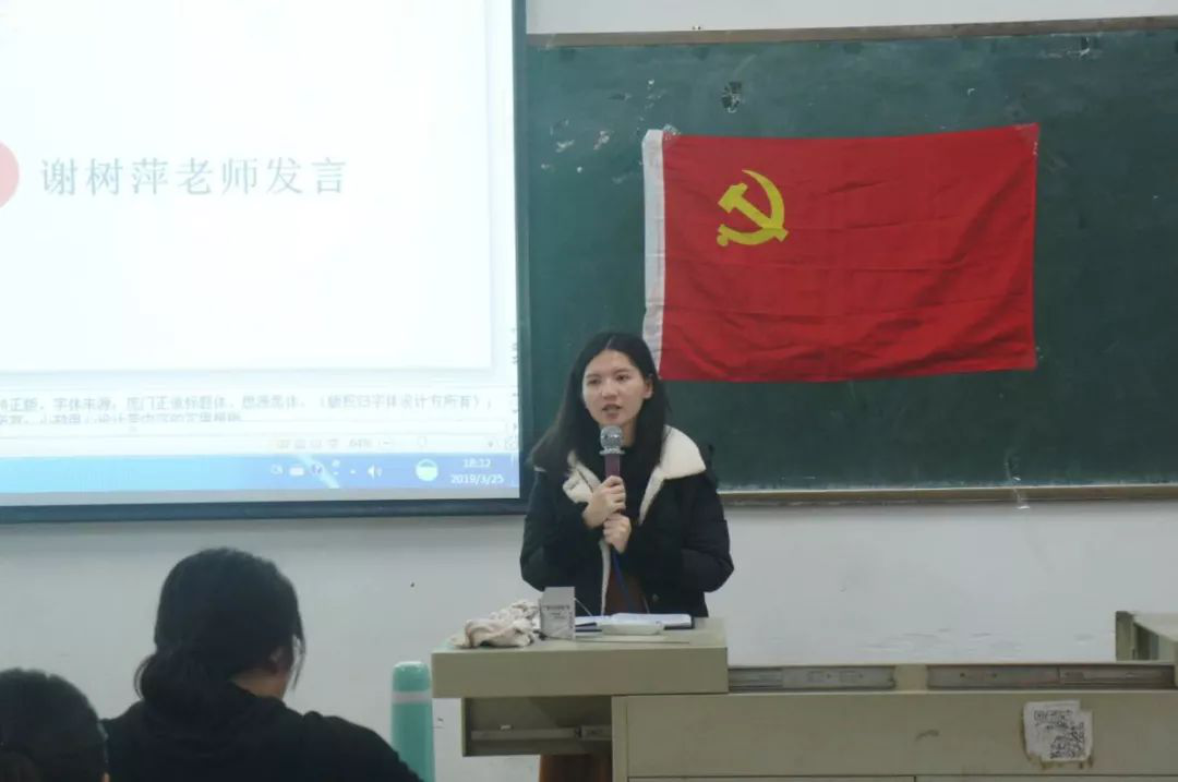 2019年3月25日晚上6:30,文学系学生党支部在励志楼D201召开文学系第十八期入党发展对象二轮答辩大会。文学系学生党支部指导老师谢树萍老师、文学系学生党支部副书记黄群珍同志、组织委员谭敏同志、宣传委员许芊芊同志、纪检委员巫丹同志、统战委员熊滢同志以及参加本次二轮答辩的同学们出席本次答辩会。