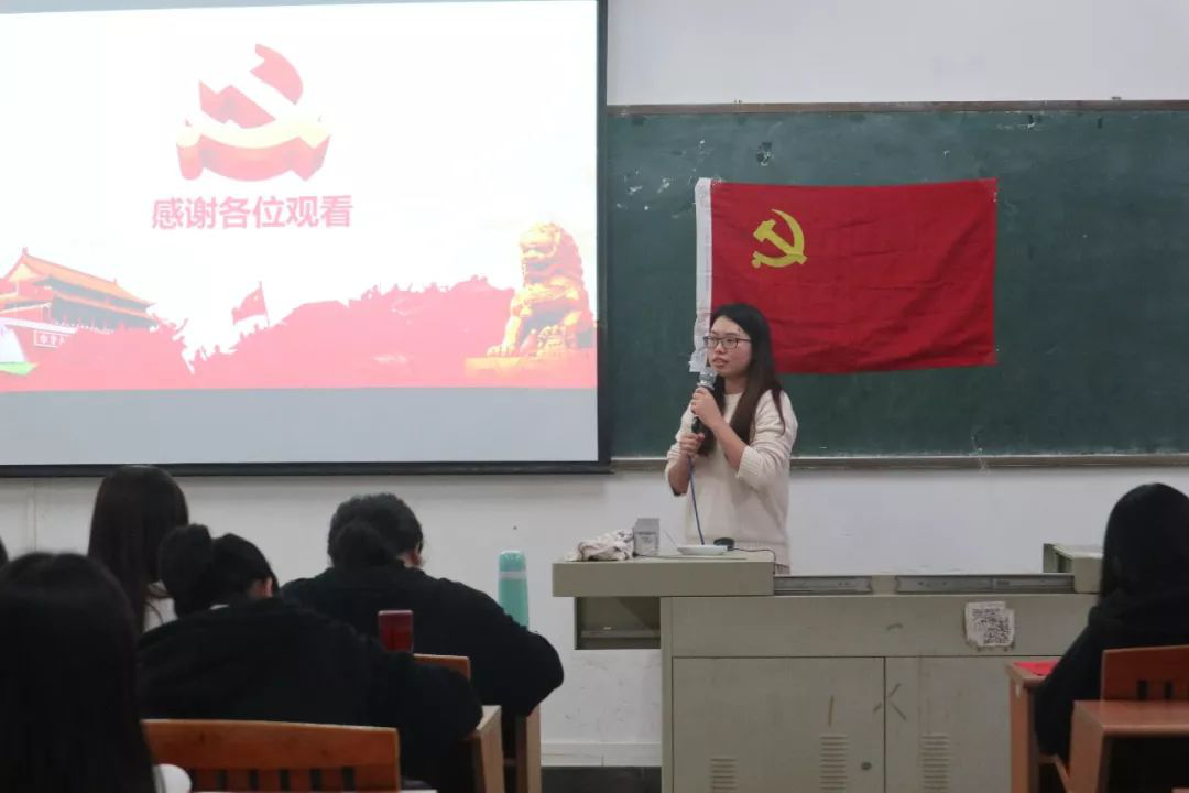 答辩开始后,参加答辩的同学分别上台从思想建设、学习成绩、入党动机、干部经历和社会实践经历等几个方面进行自我展示。随后老师和各支委就每位同学的展示内容进行提问,当被问到入党动机时,部分同学讲述了自己在生活中遇到的一些共产党员,这些党员同志在工作中保持着认真、积极的态度,他们以身作则的行事风格,给同学们留下了深刻的印象,让他们心中有了一个学习的榜样,同时也更加坚定了他们加入中国共产党的决心。通过同学们的自我展示以及老师和支委的提问,文学系学生党支部进一步加深了对参加答辩同学的了解和认识。