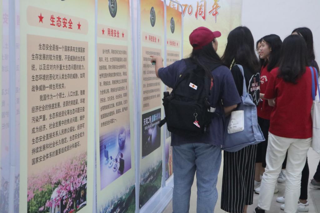2019年4月18日下午17:40分,文学系学生党支部第18期发展对象在文学系学生党支部指导老师谢树萍老师、文学系学生党支部副书记黄群珍同志以及各支委组织带领下,于中央图书馆一楼参观了全民国家安全教育日系列宣传教育展览。本次展览主题为“坚持总体国家安全观,着力防范化解重大风险,喜迎中华人民共和国建国70周年”。