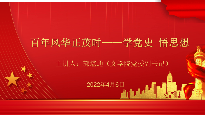 4月6日晚上,学院党委副书记郭堪通为我院2021级的入党积极分子开讲新学期思政第一课。郭堪通以“百年风华正茂时------学党史 悟思想”为主题,和同学们一起学习党史,讲述党史的红色基因,勉励学子们学史明理、学史增信、学史崇德、学史力行。因疫情影响,本次思政第一课以腾讯会议的线上方式举行。