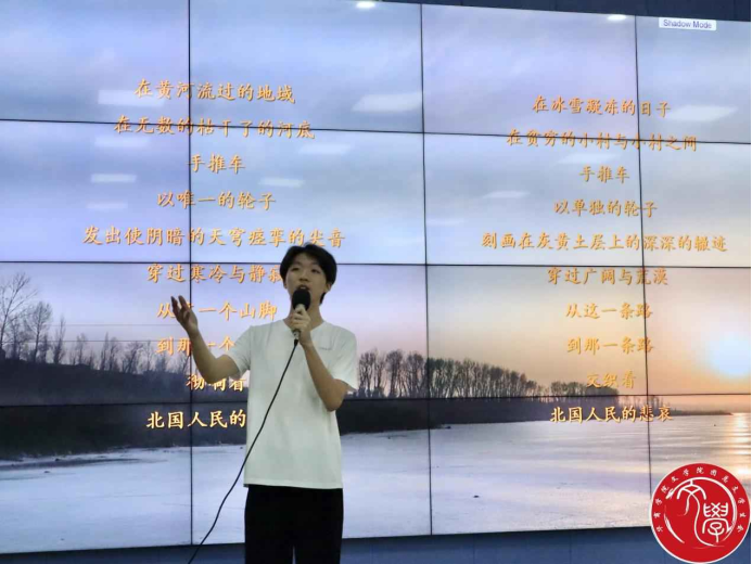 蒋家国副院长致开场辞。他表示,bv伟德国际1946的学生要培养两个最重要的基本功,这就是口头表达能力和书面表达能力。诵读、演讲、辩论等训练,是提高口头表达能力的有效途径。这次红色经典诵读活动,就是提高同学们口头表达能力的载体,是bv伟德国际1946开展第二课堂实训的重要举措。同时,这次活动也bv伟德国际1946课程思政由第一课堂向第二课堂的延伸,具有鲜明的政治意义。红色经典是我国民族文化的结晶,也是民族革命精神的象征。诵读红色经典,重温革命精神;亲近红色经典,树立使命担当。红色经典作品承载着历史叙述的重任,它以进步的历史观阐释过去、现在和未来。它包容了几代人的理想、青春和希望。因此,"红色经典"有着其它文学作品所无法替代的历史价值,很值得我们去诵读、领会和传承。希望通过这次红色经典诵读活动,同学们在专业学习上更加注重基本功的养成,在政治思想上要树立正确的世界观、人生观和价值观,争做党史知识的传播者和红色基因的传承者,用实际行动迎接党的二十大的胜利召开。