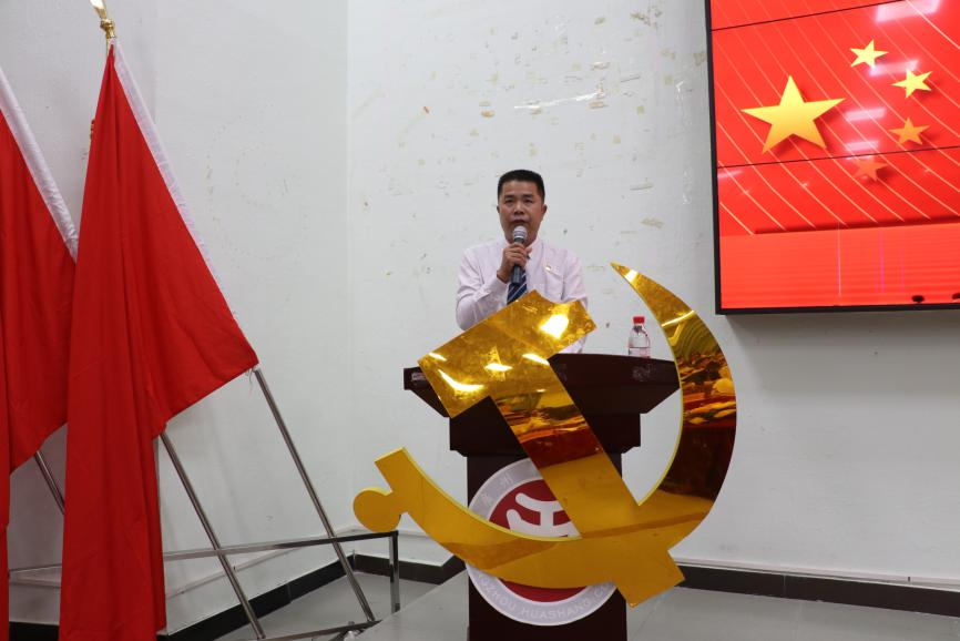 在领誓人伍世昭同志的带领下,全体党员重温了入党誓词。“我志愿加入中国共产党,拥护党的纲领,遵守党的章程,履行党员义务,执行党的决定,严守党的纪律,保守党的秘密,对党忠诚,积极工作,为共产主义奋斗终身,随时准备为党和人民牺牲一切,永不叛党。”党员同志们高举右拳,面对党旗庄严宣誓,再次表达了为共产主义事业奋斗终身的决心和信念。