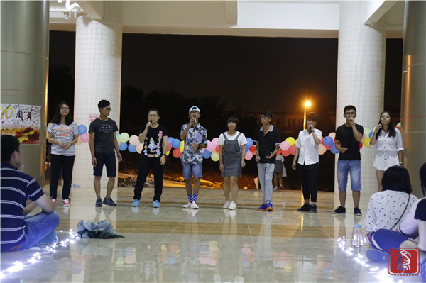 晚会的最后,何顺发老师为在场的新生们演唱了《真的爱你》和《岁月如歌》两首歌曲,歌声迷人,现场许多新生都自发地舞动着手中的荧光棒,随着音乐的节奏轻轻地摇晃身体,何顺发老师的演唱成功为本次迎新晚会划上圆满的句号。