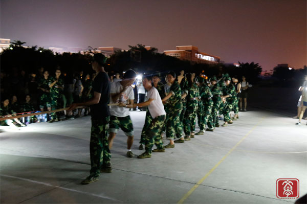 2015年9月24日星期四晚,华商bv伟德国际1946文学系2015年新生军训拔河比赛在新生军训场地进行。华商bv伟德国际1946文学系分管伟德国际副主任张继荣老师,文学系团总支学生分会书记唐志壕老师,文学系学生党支部书记何顺发老师、文学系辅导员王洁老师和谢清明老师到现场观看了本次拔河比赛。