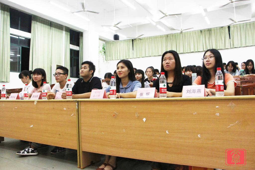 会议开始,首先公布文学系第十一届团学新干部名单,新一届的干部是承前启后的一届,更是开拓创新的一届。接着由上一届副书记陈洁雅发言,她首先对老干部们这一年的工作表示肯定,并给予表扬和感谢,她希望新干部们能够相信自己,把自己优秀的一面展示出来,继续为团学服务。随后,新一届副书记黄丹娜、主席张意、副主席汤颖、朱慧心、欧阳韵楠都一一发表讲话,她们对上一届干部的努力和贡献表示了感谢,并对以后的工作提出了殷切期望,希望新一届的干部们要明确自己的职责,为再创团学的辉煌而努力。