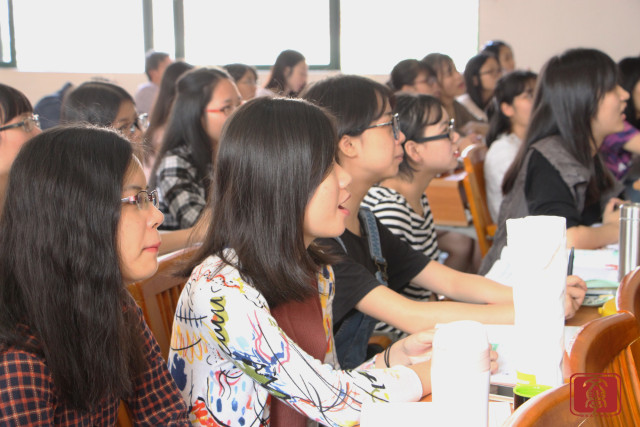 接着,李雅洁老师对语言交际技能教学提出一个观点:外教老师在教授学生的时候应在特定的场合说出适当得体的话,她以“对不起”与“不好意思”在不同场景的区别来论述这个观点。最后,李雅洁老师指出,尊重文化差异是很有必要的,学习语言最终要落实到提高语言的交际技能上。