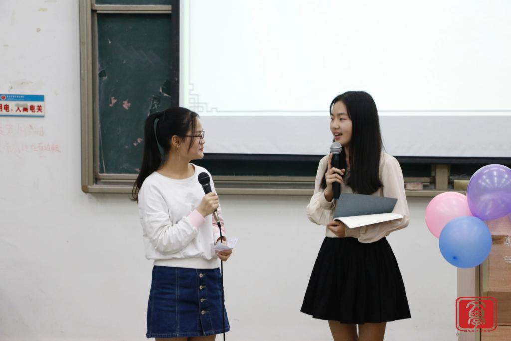 在“齐眉棍”这一小游戏后,由文学系歌手队的汪楚楚和方雪璐同学进行《最初的梦想》歌曲演唱,现场一片活跃,纷纷亮起闪光灯。表演结束后进入文学系三月份户外团生活动视频展示,视频勾起了同学们在户外团生活动的有趣回忆。