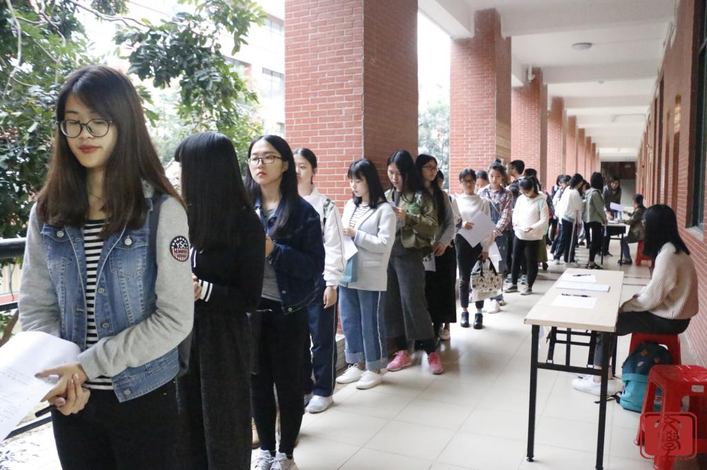 各大系的同学怀揣着不同的心情却相同的梦想,不辞辛劳在走廊排队等候面试。
