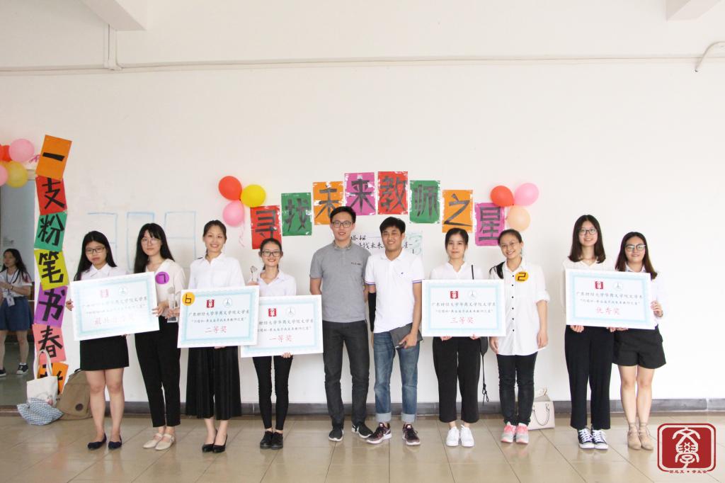 2017年5月23日14点30分,由广东财经大学华商bv伟德国际1946文学系团总支社会实践部举办的灯塔杯第五届寻找未来教师之星大赛决赛于励志楼D308举行。担任本次大赛的评委有:经济管理学院公共管理系行政管理专业专任老师郑丽芬、文学系团总支书记兼学生会指导老师唐志壕、文学系辅导员谢清明老师、郭永健老师,以及出席本次大赛的嘉宾有:广州灯塔教育培训中心创始人魏嘉林师兄和文学系主席团。