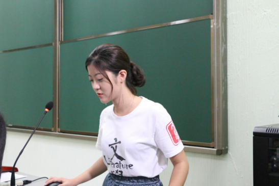 第四个环节是由学生代表作文学系内四大组织介绍,分别是文学系团总支/学生会、文学系勤工助学中心、文学系学生党支部、文学系心康站等。四大组织分别介绍了自己的口号、组织结构图以及工作内容等等,让新生们更加深入的了解文学系四大组织。
