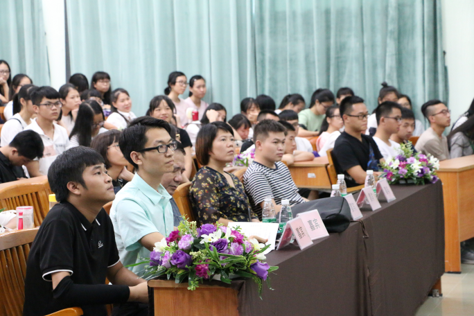 第三个环节是由专任老师发言。新的生活,新的真诚。刘文兰老师提到:“我们要摆正心态,迎接新的大学生活。华商虽然不是名牌大学,但在哪里都是读书,英雄不问出处。”接下来她也说到:“大学之大不在于大楼,不在于大师,在于大书。”希望我们能好好利用书籍,发挥书籍的价值。接下来谢清明老师做了自我介绍表明自己辅导员的身份,希望新生有问题可以向辅导员和助班请教。