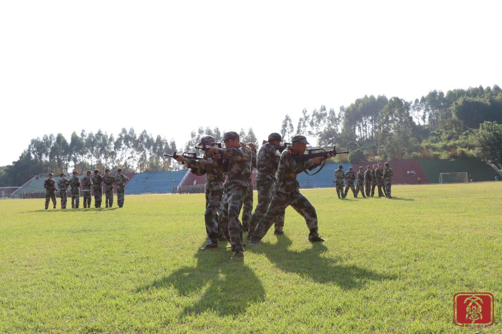2017年9月17日,2017年广东财经大学华商学院大一新生军训的第五天。2017级新生在华商学院进行军事训练。