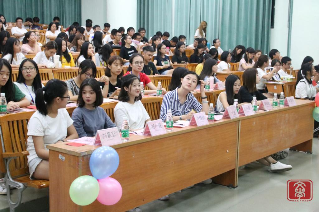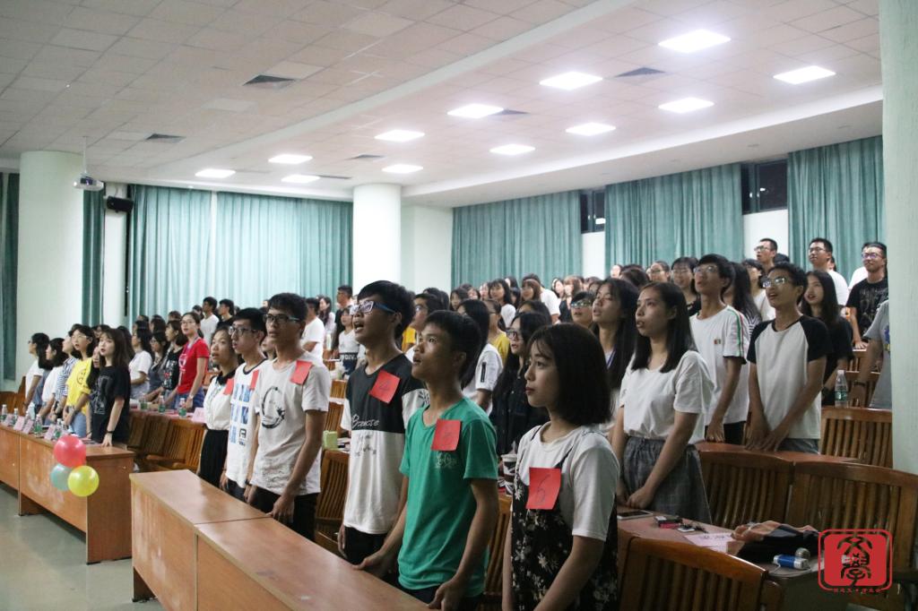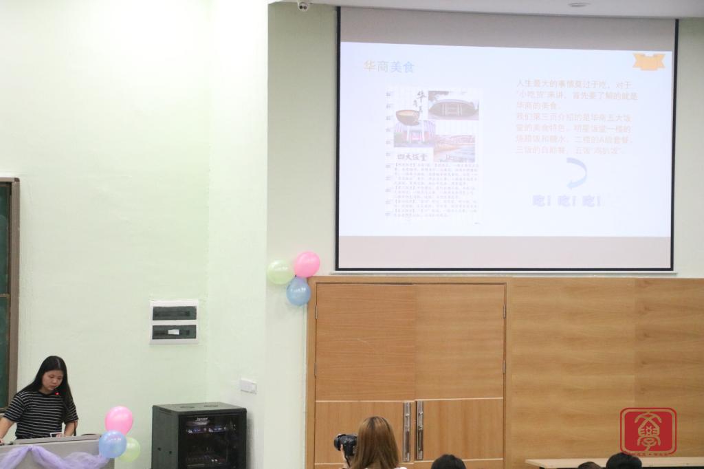 大会伊始,文学系师生们一起奏唱团歌,奏唱完毕,进入大会的第一个环节:回顾班级组织的户外团生活动,各班级学生积极呼吁学校组织的团生活动,通过活动积极响应党的十九大。接下来是由团生知识竞赛线上答题的前六名同学上台进行第一轮的“快问快答”环节,共有十题。第一轮成绩的前四名同学可晋级下一轮比赛。答题结束后进入文学系九月份户外团生活动视频展示,视频中是师兄师姐给新生的寄语以及提出如何尽快适应大学生活的建议。精彩的视频过后,分别由16汉文4班、16汉文3班以及16汉文1班的代表进行团生活动小册子的展示。三个班级代表都用PPT的方式展示了他们制作的小册子,三个班级都介绍了华商的衣食住行,给了新生们适应大学生活的建议,让他们更快适应大学生活。