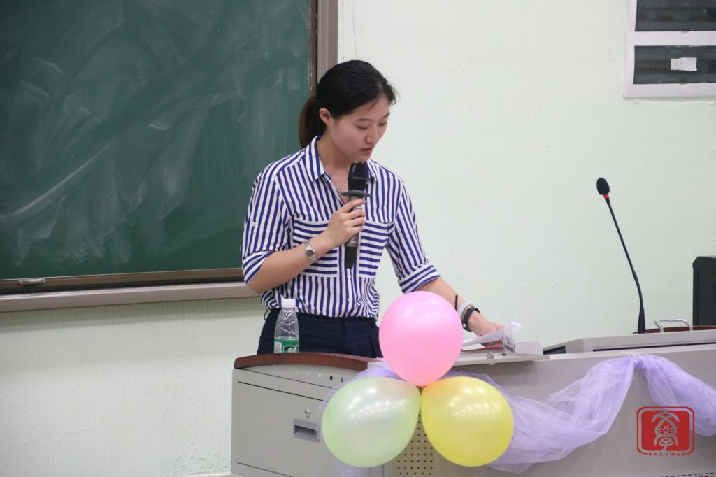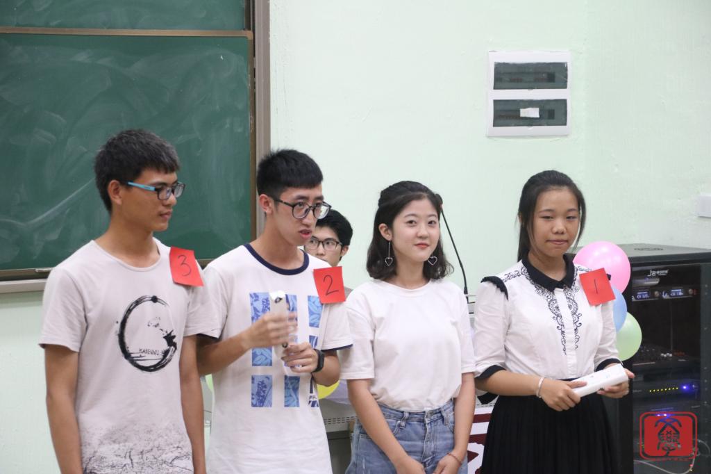 接下来是由团生知识竞赛第一轮前四名同学进行加试赛,共十题,以抢答方式进行。在加试赛中每个选手都使出浑身解数抢答,现场十分激烈。在中场的休息环节由16汉文3班的林思仪进行《其实都没有》的歌曲演唱,旋律优美。下一个环节是颁奖环节,首先是进行户外团生颁奖,由现场投票得出文学系九月团组织生活班级团生“最佳展示奖”的获奖班级为16级汉语言文学4班,而荣获本次团生活动的第一名是16汉语言文学1班,第二名是16汉语言文学3班,而16汉语言文学2班则为第三名。接下来是进行知识竞赛颁奖,第一名是二号赵汝彬,第二名是一号黄纪君,第三名是三号苏子金。大会尾声,丁洁老师对本次大会进行总结,首先,她对本次大会进行点评,指出班级展示环节中的优点和缺点。再者,她指出我们要积极响应党的十九大,主动学习党的政策和方针,把优秀的品质发扬到日常学习和生活当中,希望我们在团生中学习到知识,也在日常生活中奉献出自己的绵薄之力,努力做一名优秀的共青团员或者党员。