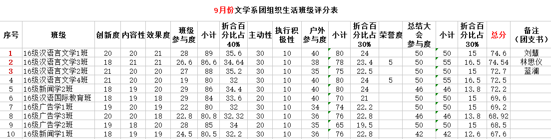 回首九月团生活动,文学系15、16级各班学生积极响应中国共青团的号召,对班级团生活动进行精彩策划。此次大会,不仅展现了华商学子的良好素质,也激励了同学们听从党的指挥,努力做优秀的人。