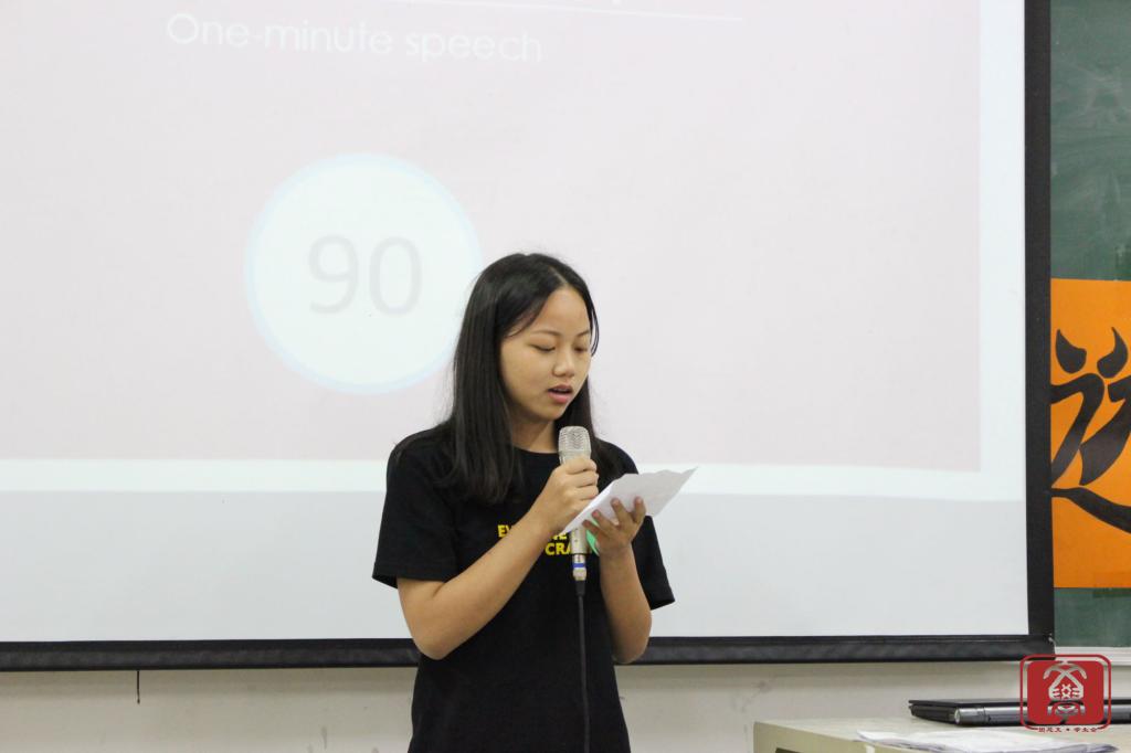 参赛选手首先进行简单的自我介绍,接着按照抽取到的话题进行一分钟的演讲,在第一场比赛中设置了11道问题,在加赛中设置了10道问题供选手们抽取。这个环节是最精彩,最能考验选手的口才能力。