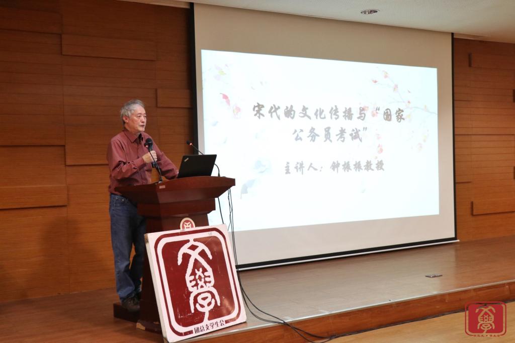 讲座主讲人钟振振教授,在讲座中分享了其在宋代文学学习和研究的心得成果。钟教授表示,该讲座内容十分切合我们当前的国家,并希望通过宋代文化来警示与增加我们中华民族的文化软实力。另外,近十年来我国公务员 考试经久不衰,竞争激烈,而宋代的“国家公务员 考试”,即科举考试文化能给我们现今的考试制度带来启发。