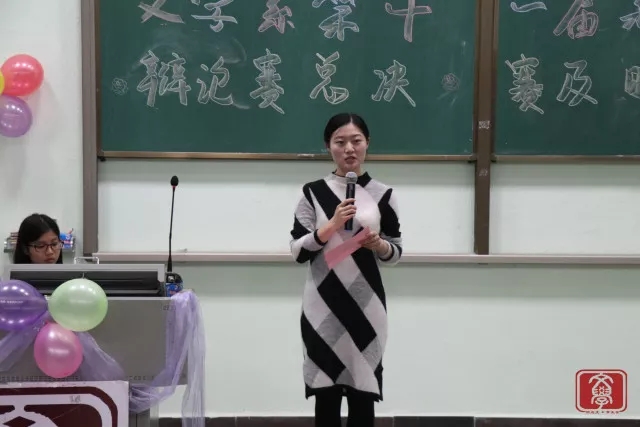 随后第十二届文学系辩论队队长饶欢进行了发言,她表示感谢工作人员的帮助以及各位带队师兄师姐付出的心血,各位辩手从能力和表现上都有非常大的进步,也表示自己会尽最大的努力帮助各位辩手。