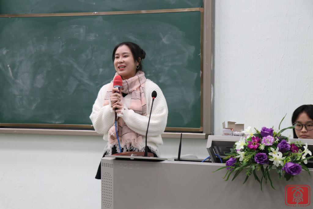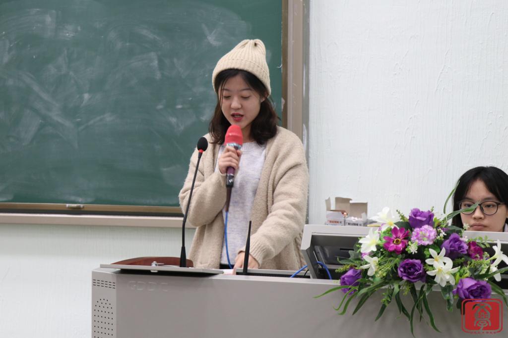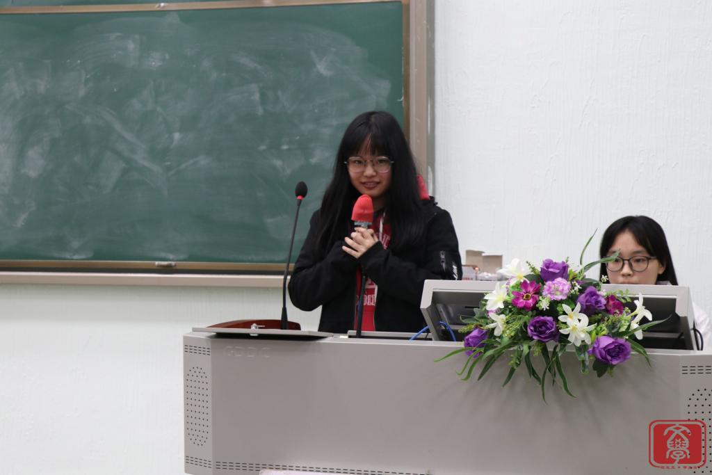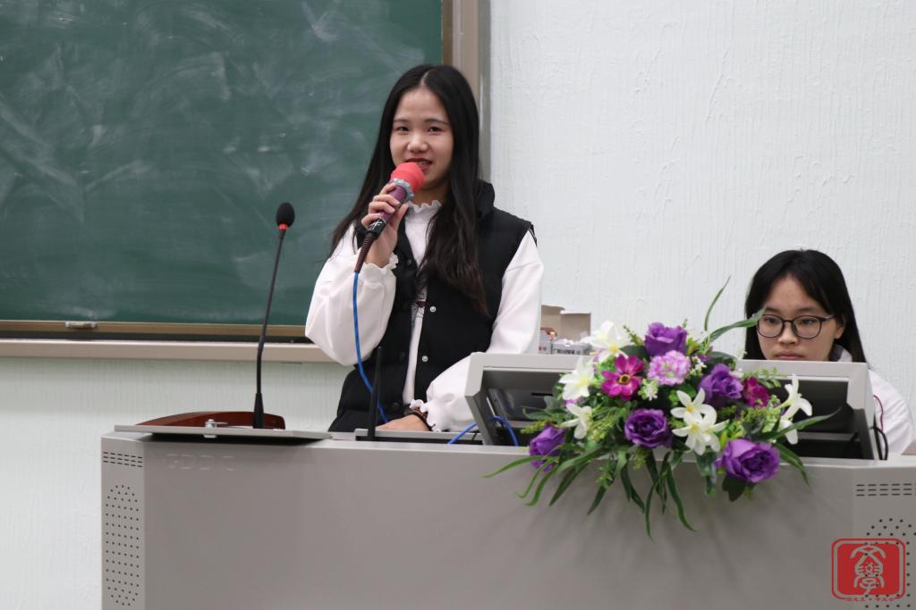 大会第三个环节,文学系团总支书记兼学生会指导老师丁洁老师为本次大会作总结。首先,她对团学各干部干事的付出表示衷心感谢,正是大家的努力付出,才让团学举办的活动得以“自动化”完成。接着,她表示在工作方面会严格要求各干部干事,尽心尽力,希望能与文学系团学一起成长。