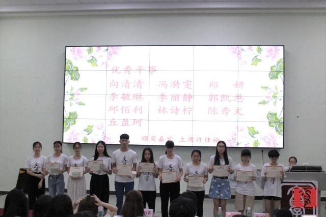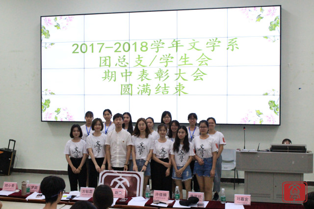 2018年5月29日晚6点,文学系团总支学生会期中表彰大会在励志楼b207举行。莅临本次表彰大会的嘉宾有文学系团总支书记兼学生会指导老师赵益老师,文学系团总支副书记方钰霖,文学系学生会主席许佳楠,副主席郑小曼、张梦圆、李国欣,文学系秘书部秘书长刘嘉宜。