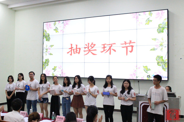 在颁奖环节结束后,又开始了幸运观众抽奖环节。通过屏幕上的滚动数字,由嘉宾团喊停的模式,在现场抽取幸运观众。这个环节极大的调动了观众的参与积极性,现场气氛十分活跃。在被抽中的观众里还有两位之前已经上台领过奖的同学,真是非常幸运了。