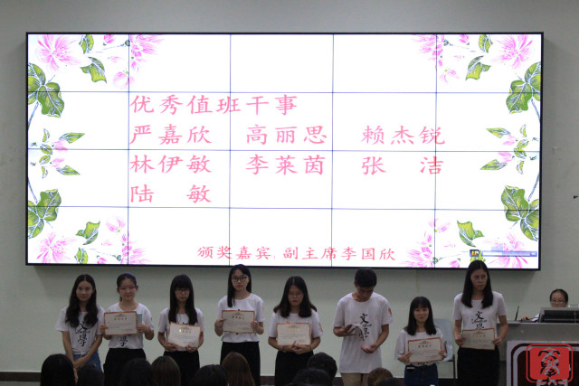 接下来分别由赵益老师和方钰霖,许佳楠以及张梦圆为优秀干部和优秀干事颁发奖状以及奖品。而优秀值班干事的奖项则由李国欣和郑小曼颁发。值得一提的是,每一位获奖者的奖品都是由自己在奖品箱中抽取的,在保持了神秘感的同时也让获奖的同学们感到十分惊喜。