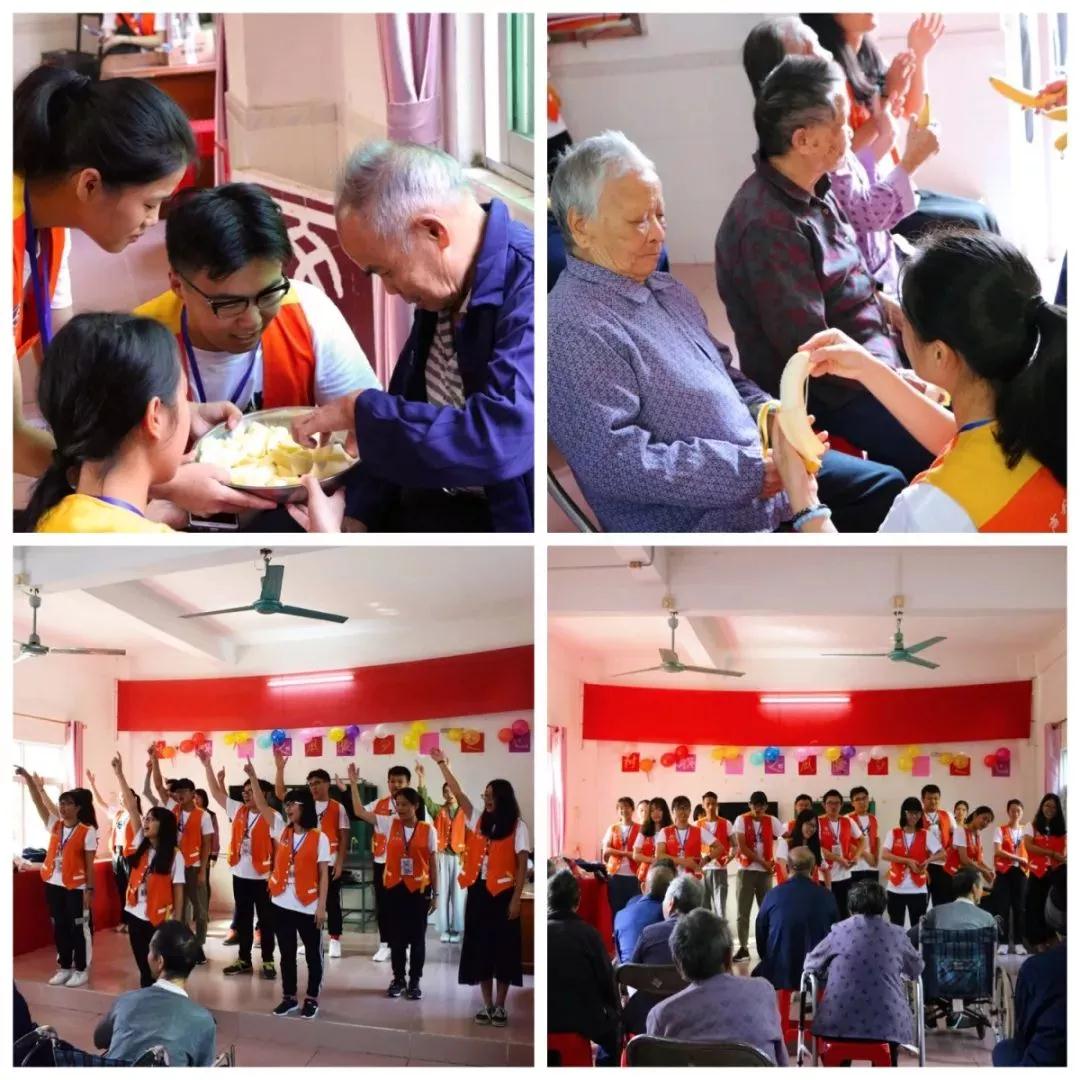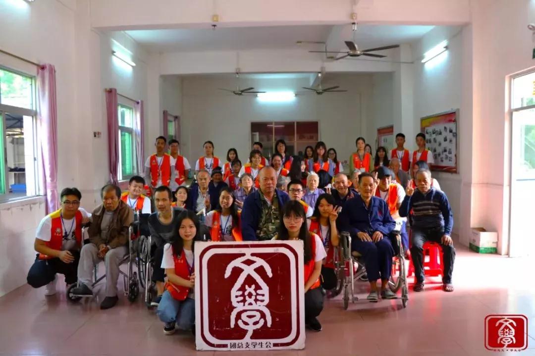 2018年11月11日,广东财经大学华商bv伟德国际1946文学系青协分会组织慰问敬老院活动。早晨7点30分,校园门口早早聚集了32位披着志愿者服的华商学子,在朝阳中等候巴士的到来,期待着即将到来的敬老院探访之旅。短暂的车程后,志愿者们于8点30分抵达增城福和敬老院。此时天空已经一片晴朗,阳光在树叶间撒下,蓝蓝的天空,青葱的树木。志愿者们拎着为老人精心准备的礼物,来到了老人们平时娱乐的活动室,并开始布置场地,摆放凳子、张贴彩纸、布置气球。