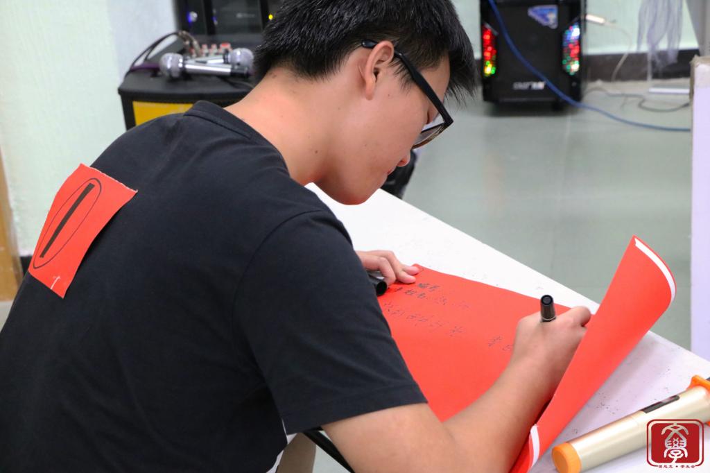 接下来,进入到本次比赛的第三环节,选手们需在90秒内写出含有各自抽到的字的诗句,根据本轮分数高低决出前三名。只见三位选手时而埋头奋笔疾书,时而撑头冥想,紧张的气氛呼之欲出。