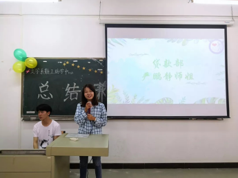 宣传部何巧媚师姐总结上半学期的活动经验,对小干事们积极的工作给予肯定。希望我们时有联系,也希望我们可以更加严格要求自己。