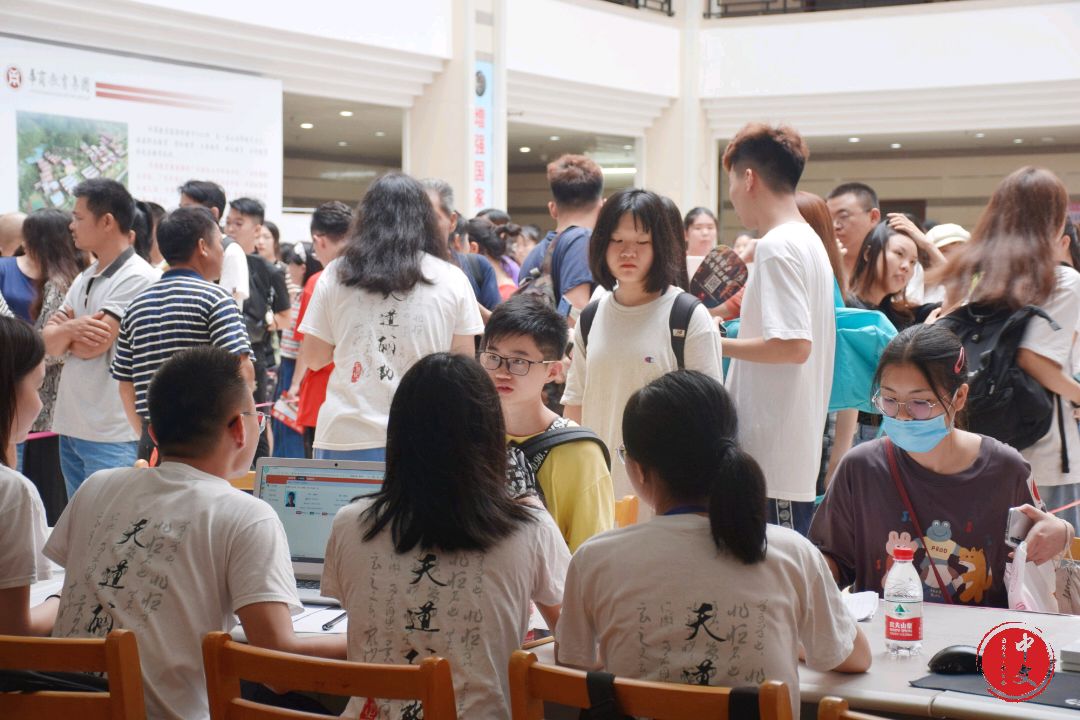 下午的太阳愈发猛烈,散发的热量不减丝毫,工作人员早已汗流浃背,但他们仍然认真负责地做好自己的工作。新生们在迎新人员和学生志愿者的引导下,有条不紊地办理入学手续。