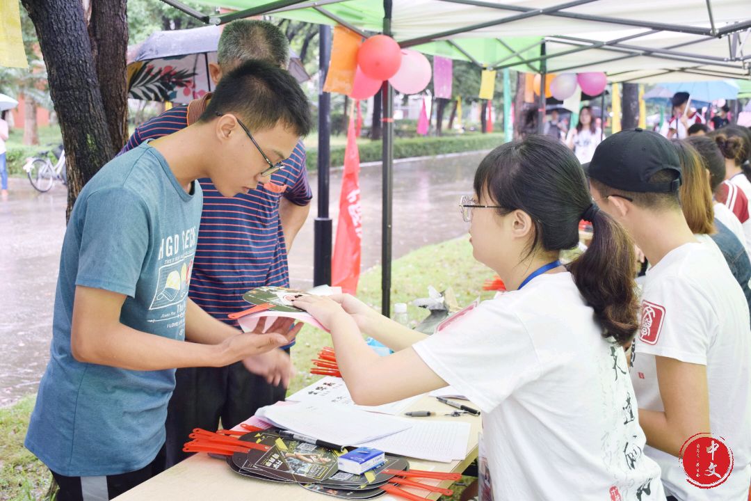 早上九点左右,2019级新生陆续到来。文学系的迎新大本营位于面向图书馆左侧的第一个摊位。此次迎新工作分为五大组,分别是大本营接待组、引导注册报道组、图书馆内注册报到组、宿舍接送搬运组以及机动组。大本营接待组的工作人员已在帐篷内翘首以待,负责新生签到的相关事项。在校门口和各校道上的工作人员都积极地引导新生到大本营签到。何顺发老师以及何嘉鸿老师也莅临大本营指导迎新工作。每组的工作都有条理地进行着。