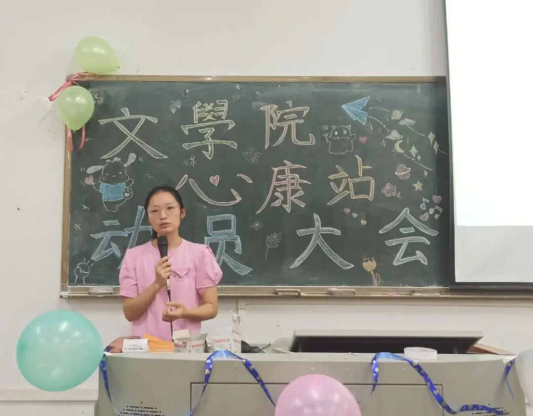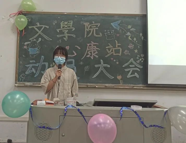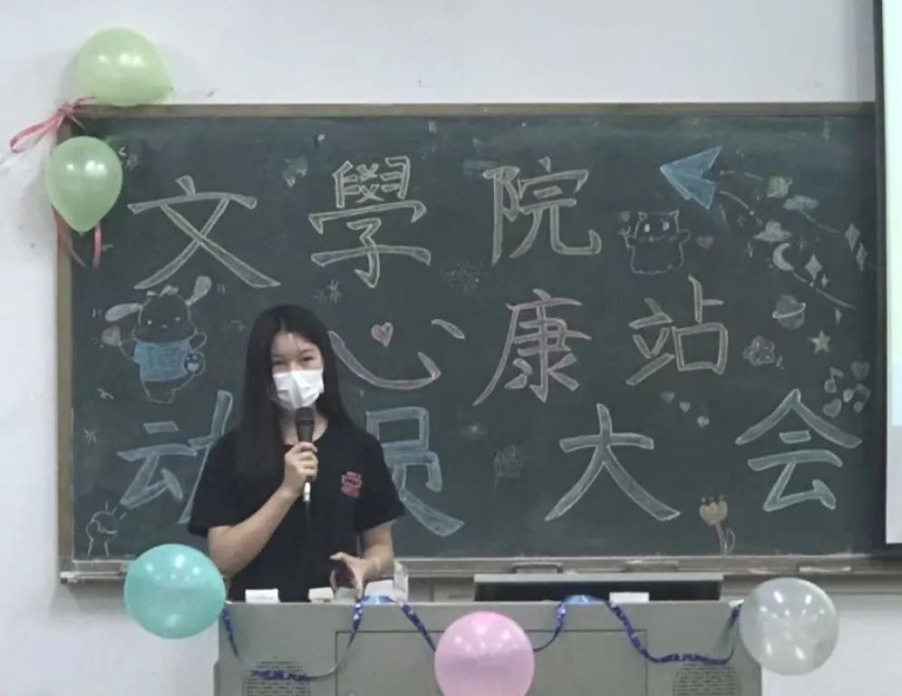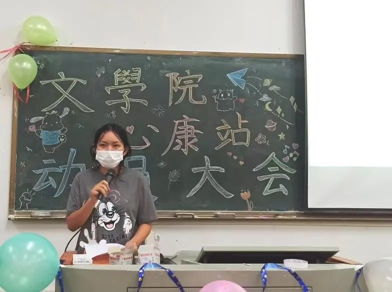 林子愉站长首先分享了她加入心康站的心理感受,并对心康全体成员的辛勤付出表示衷心的感谢,最后表示希望所有的干事干部都能在最美好的年纪,尽最大的努力,青春自我,飞扬热爱,永不停息。