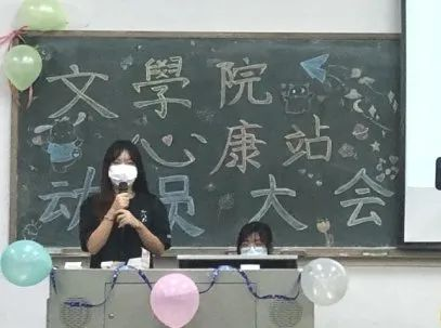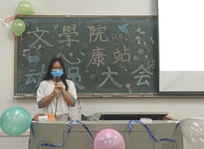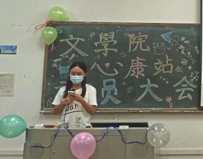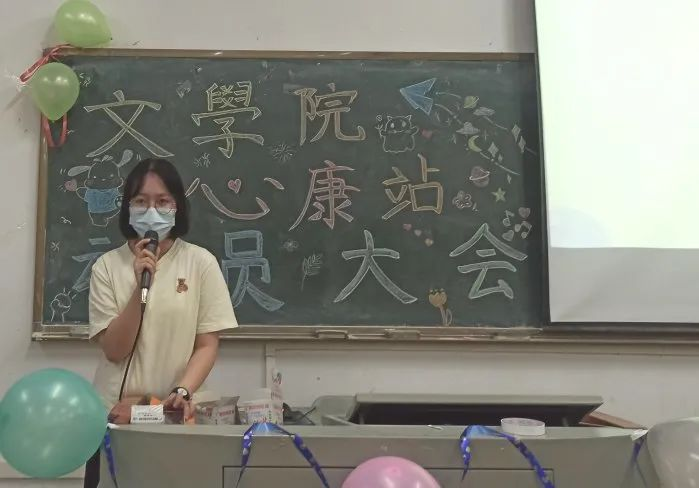宣传部部长张海美提出了对新成员的希望寄语,介绍了宣传部的主要工作,并对新干事进行鼓励,希望在未来大家的共同努力下,心康站可以做的越来越好。