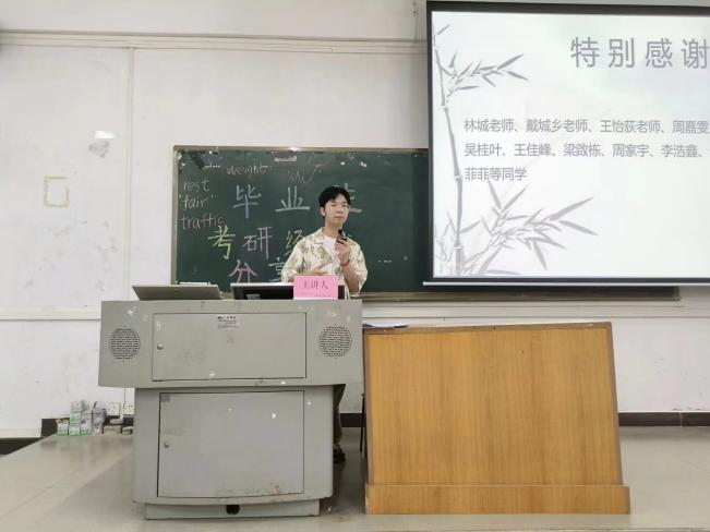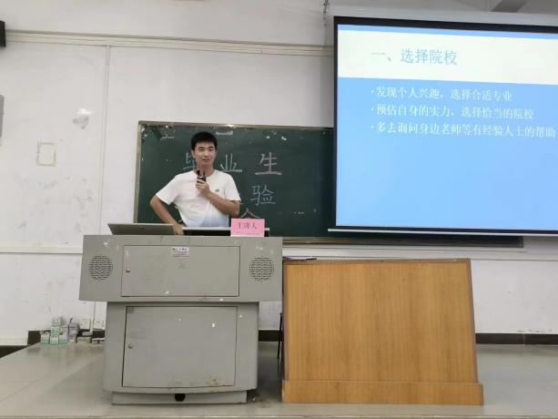 曹思师兄从确定目标院校和专业、搜集考研资料、制定备考计划等多个方面分享了自己的宝贵经验,同时他对备考过程进行了仔细地讲解,为同学们提供了重要的备考参考。其次,曹思师兄认为在备考的过程中,我们会遇到很多困难,可能有同学会觉得这个过程很痛苦,但我们要把这种痛苦当作是一种进步,化作前进的动力。师兄说:努力与幸运是相关的,越努力就会越幸运。