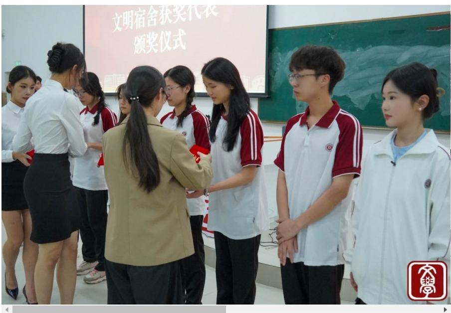 在文明宿舍颁奖环节中,19号楼238等承载着文明风尚的宿舍从众多候选中脱颖而出。韦秋钰老师为获奖宿舍代表颁发奖状,并鼓励同学们继续保持优良作风,营造温馨和谐的居住环境。