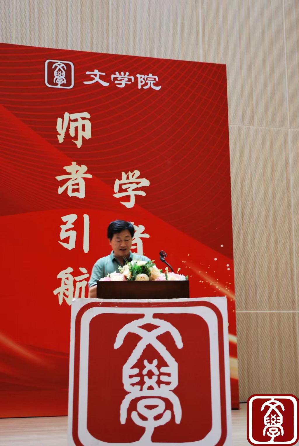 师者之言,如灯引路。教师代表张金龙以“得天下英才而教育之”抒怀,细数bv伟德国际1946“宝藏教师”的学术热忱——从唐诗宋词的浪漫解析,到现当代文学的社会洞察,更叮嘱新生培养自主学习与深度思考能力,在文字世界中探寻思想真谛。辅导员代表何致颖则以“破茧、深耕、怀瑾、向阳”四句箴言,承诺将做新生的“灯塔与港湾”,陪伴大家在集体温暖中涵养德行、绽放光芒。