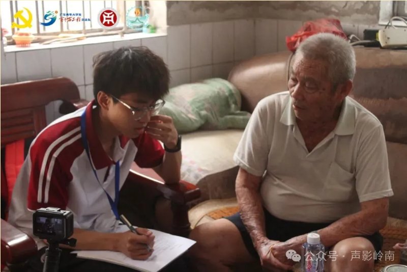 在蝉鸣荔红的七月,“红炬薪传,声影岭南”实践队的队员们带着录音笔与相机,走进西南村的巷陌深处。他们用青春的温度,焐热了那些即将消逝的乡村记忆。 在何照明老人斑驳的院墙下,阳光透过古榕的枝叶,在记录本上投下细碎的光影。老人讲述的每一个细节,都成为乡村振兴最生动的注脚。在何景超兄弟的教育故事中,年轻学子们看见的不仅是个人的奋斗史,更是一个村庄教育变迁的缩影。