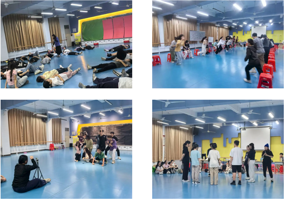 4月15日的第一堂课,是一场充满惊喜的 “相遇”。教室里,老师们带着 “Pleasure(快乐)、Imagination(想象)、Play(游戏)” 的理念,用一场别开生面的破冰活动拉开序幕 —— 同学们在 “听指令做动作” 的欢笑声中打破拘谨,在 “漫步在课室里” 的练习中释放想象力。那一天,大家第一次意识到:表演不是遥不可及的 “专业技能”,而是从放松身体、倾听彼此开始的日常。