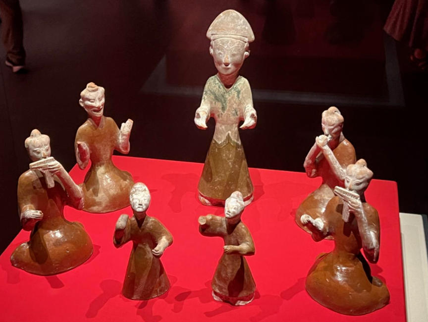 在史前文物展区,原始石器的粗糙纹理,见证着西域先民最初的生存智慧。那些简单的工具,是人类探索这片土地的开端印记。随着脚步深入,丝路文物区的珍品令人目不暇接。汉代的丝织品残片,虽历经岁月,仍可辨精美纹路,让人遥想“使者相望于道”的丝路盛景;唐代的三彩骆驼俑,形态生动,仿佛正驮着货物,在漫漫驼铃中穿越戈壁。正如老师讲解时所说:“这些文物,是丝路贸易与文化交融的实物注脚,把史书上的‘使者往来’‘商队络绎’,变成了可触碰的历史见证。”
