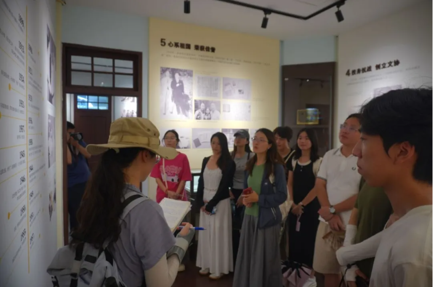 在探访李劼人故居的过程中,师生们通过游览展馆外的家风文化长廊、观摩馆内保存的手稿,体会其所承载的温度以及地域情怀,探寻并解读了巴蜀文化脉络所蕴含的“在地性”内涵。老师们还现场讲解了李劼人作品与成都本土文化、世界文学的交融,这让同学们更加深刻地认识到:文学的传承离不开扎根本土土壤,也离不开以开阔的眼界接纳多元视角。唯有如此,才能让文化脉络实现长久的延续与发展。