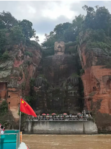 24日上午,带着增强学生对中国现当代文学、地域文学和民间文化的理解与联系这一目标,师生们前往四川乐山参观唐朝匠人之佛学巨作——乐山大佛。瞻仰着高大的佛像,有同学细腻觉察出这千年前一锤一凿凿出的,不只是镇水的信仰,更是对“众生安稳”的盼望,也有同学认为这也是一种民间的信仰,它渗透在民间世界,发挥着不可忽略的作用。