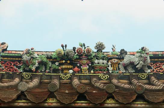 嵌瓷:屋脊仙鹤