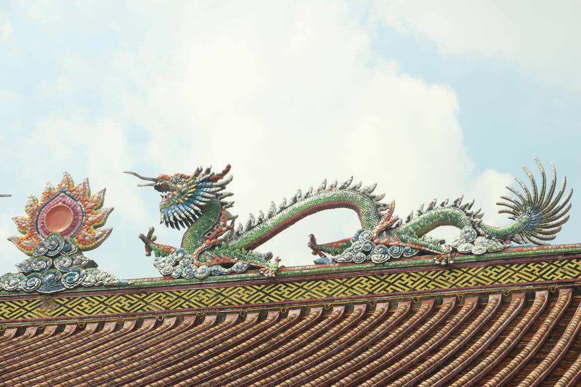 嵌瓷:双龙戏珠局部