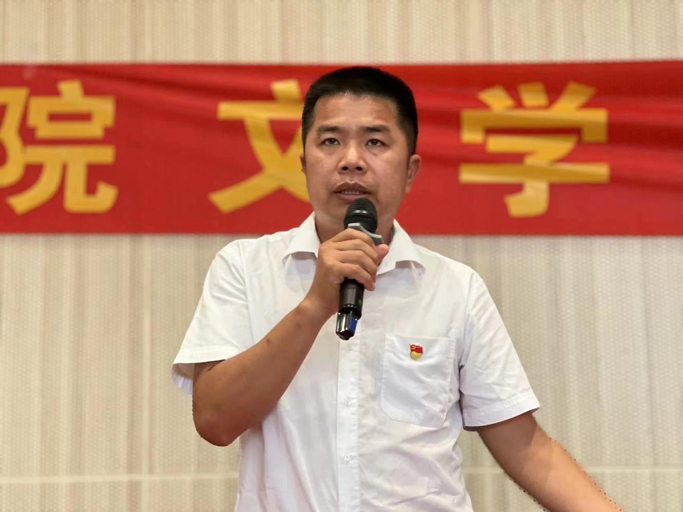 学院党委副书记郭堪通发言,他希望新同学:一是要牢固树立坚定的理想信念,做到坚定不移跟党走,努力成为堪当中华民族伟大复兴重任的一代青年英才;二是要坚持立德修身、认真践行社会主义核心价值观,不断提升自身的修养水平;三是要知敬畏、守规矩,要把国法、校纪内化于心外化于形。四是要严格遵守疫情防控各项规定,主动配合,确保校园安全稳定。最后,他希望同学们可以在大学生活中把握机会,主动积极参加各种活动,不断提高自己的综合素质,并祝愿大家学有所成,为中华民族伟大复兴建立丰功伟绩。