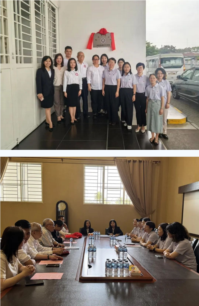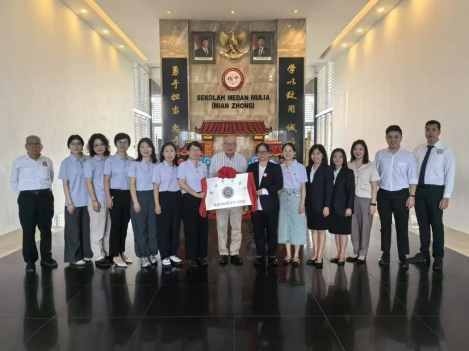 2025年1月23日,bv伟德国际1946副院长徐桃率团访问印度尼西亚棉兰市的棉中中小学,举行汉语国际教育实习基地揭牌仪式,并与印尼苏钢集团董事长苏用发进行了深入的座谈交流。 双方围绕华文教育的现状、挑战及未来合作方向展开了广泛讨论,旨在推动中印教育合作,促进华文教育的可持续发展。