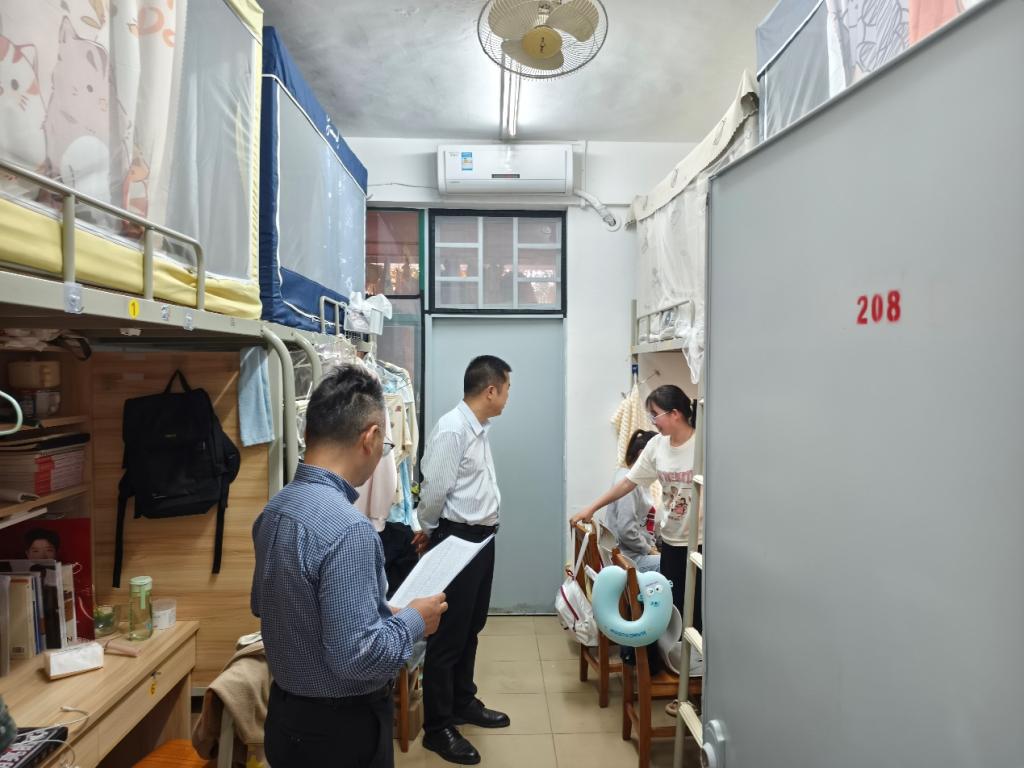 本次专项检查行动由学院党委副书记郭堪通亲自带队,bv伟德国际1946辅导员、团委、学生会、党群服务队等多部门联合参与组成专项检查组。检查组对两校区的宿舍进行了全面、细致的检查,重点对宿舍用电安全、消防安全、卫生状况等方面进行了排查。
